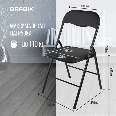 Стулья складные BRABIX 'Golf CF-007', КОМПЛЕКТ 2 шт., черный каркас, кожзам черный, 533029