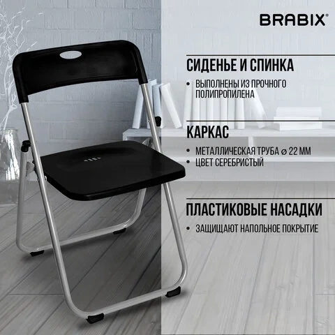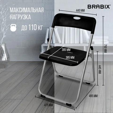 Стулья складные BRABIX 'Golf Lite CF-017', КОМПЛЕКТ 4 шт., серебристый каркас, пластик, чёрный, 5330