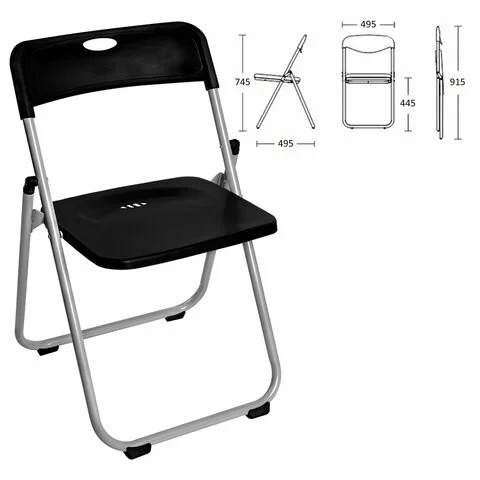 Спинка и сиденье выполнены из прочного полипропилена. Прочная стальная рама обеспечивает долговечность эксплуатации, а пластиковые насадки на ножках защищают напольное покрытие от повреждений. Модель оснащена пластиковой спинкой с эргономичным профилем. Складная конструкция экономит место при перевозке и хранении. Стул выдерживает нагрузку до 110 кг. Для дополнительной сохранности комплект упакован в картонную коробку.