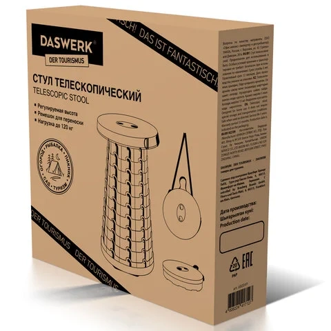 Стул складной телескопический туристический садовый для пикника, DASWERK, 680049