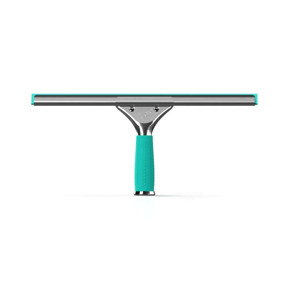 Нержавеющий стальной скребок для окон со стационарной рукояткой из мягкого материала с пружиной и каналом с заменяемой резиновой накладкой