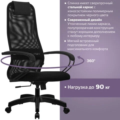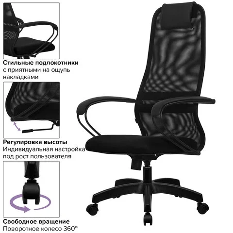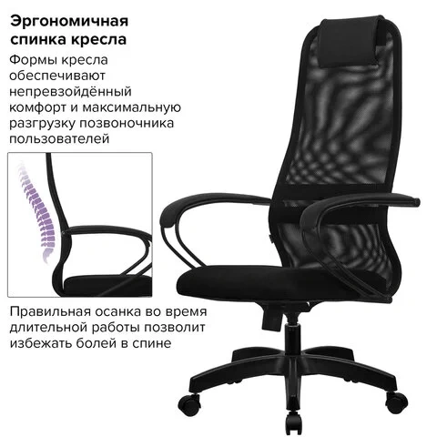 Кресло офисное Метта SU-B-8, ткань-сетка, черная, крестовина пластик