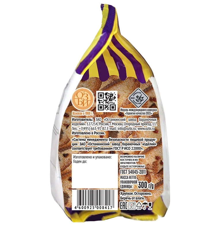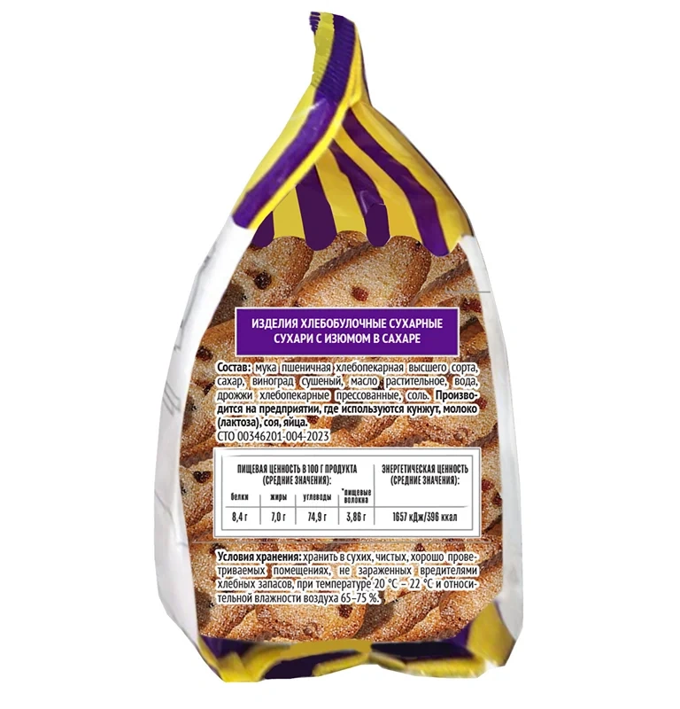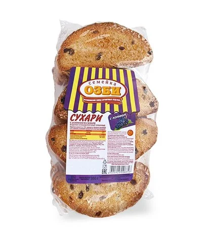Сухари Семейка Озби с изюмом классические с отделкой сахаром, 300г
