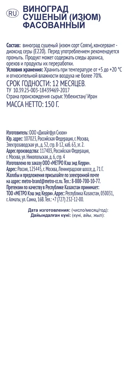 Смесь Seeberger обжаренные орехи и темный изюм Джамбо, 150г