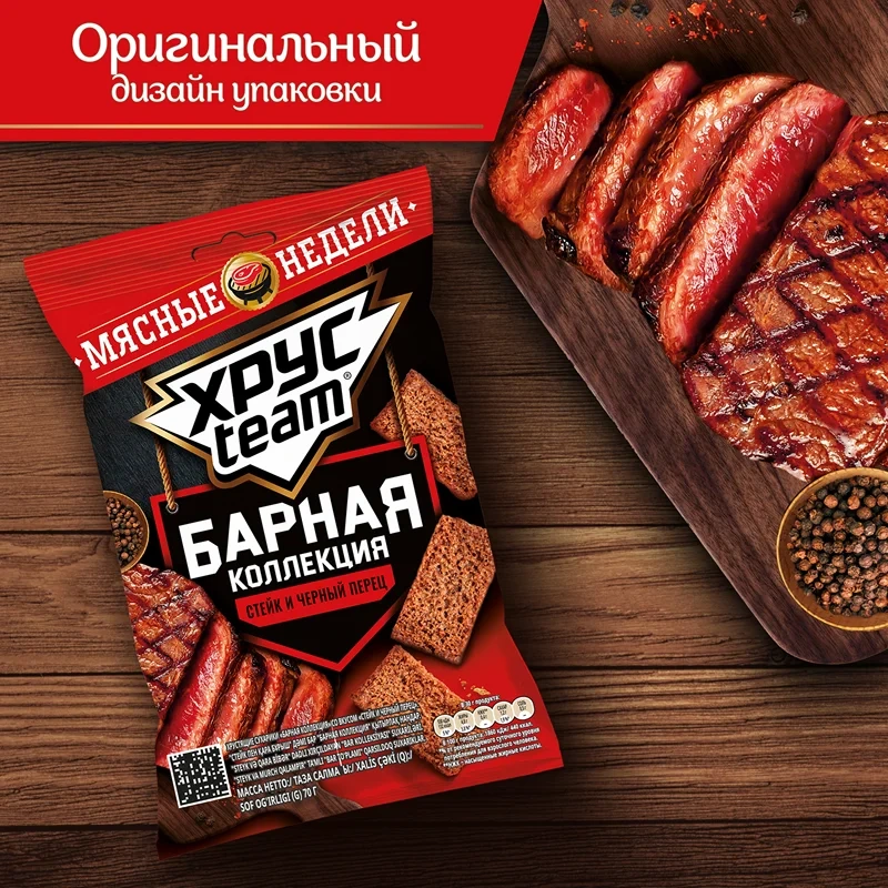 Это сочетание яркого и пикантного вкуса стейка с перцем, воздушной текстуры и оригинальной формы сухариков. Они сделают любой перекус ещё приятнее и дополнят атмосферу вечернего отдыха. Это хрустящая солёная закуска с оригинальными и классическими вкусами. Подойдёт для перекуса во время просмотра спортивного матча или прогулки. Вкусные ржаные сухарики правильной квадратной формы. Они отличаются приятным ароматом и вкусом сочного стейка барбекю. Сухарики станут отличным перекусом в течение дня. Их можно подавать к пиву. Кроме того, удобный формат упаковки позволяет брать сухарики Хрусteam с собой на работу, учебу, прогулку или в длительное путешествие. Они всегда будут под рукой и не займут много места даже в женской сумочке.