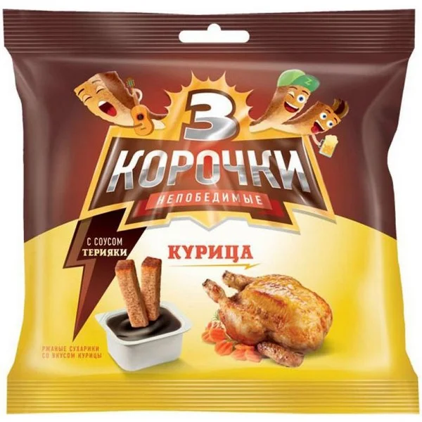 Сухарики Три Корочки ржаные Курица-сосус терияки, с соусом, 60г