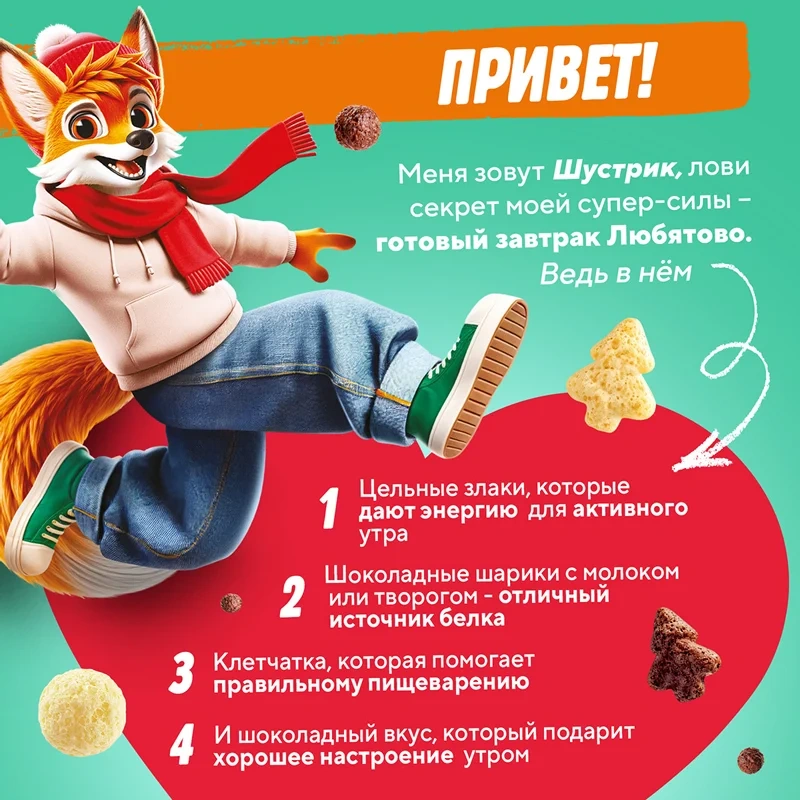 Готовый завтрак Любятово Медовые шарики и звездочки, 420г