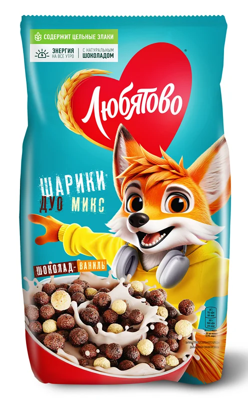 Готовый завтрак Любятово Шарики шоколадные Дуо Микс, 200г