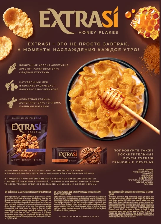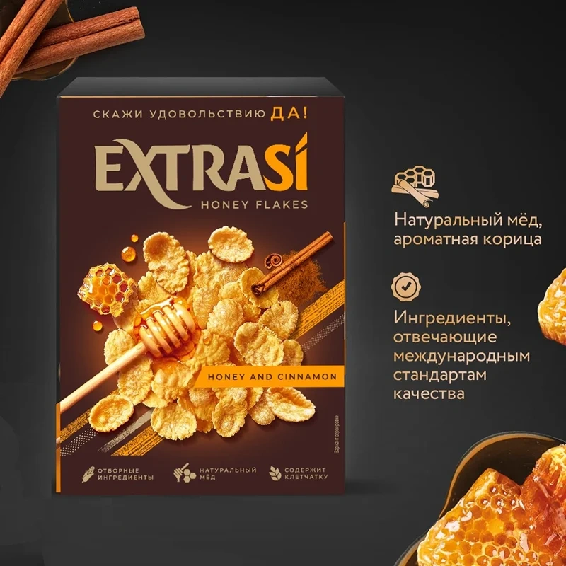 Хлопья кукурузные Extrasi с медом и корицей, 250г