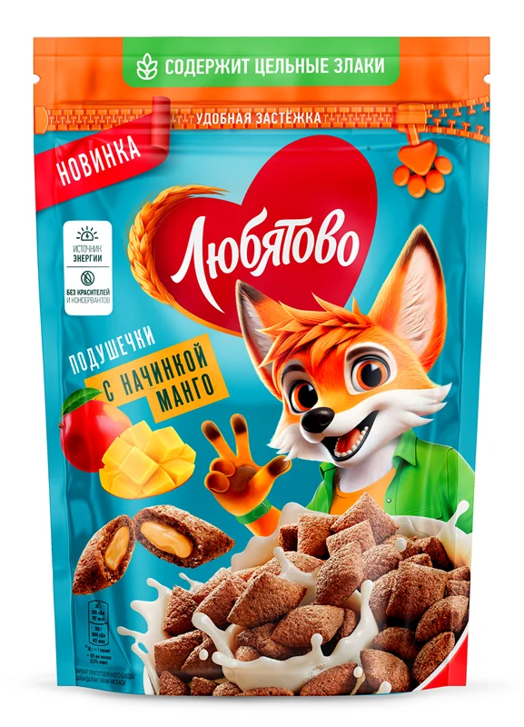 Готовый завтрак Любятово Подушечки с начинкой манго, 220г