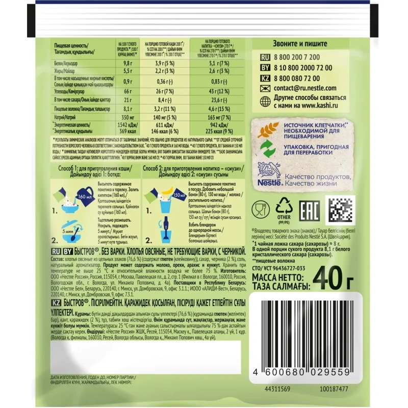 Начни утро с полезных каш Быстров! Мы создали каши Быстров только из натуральных ингр...