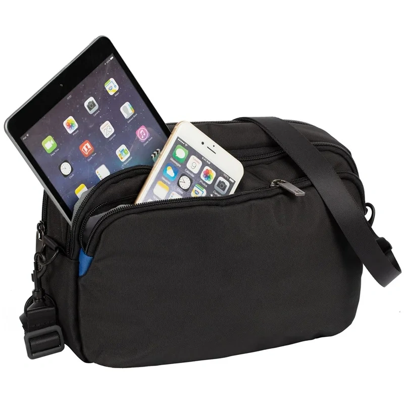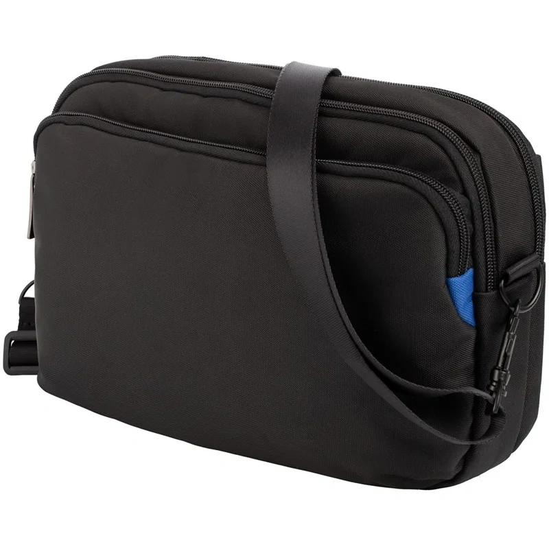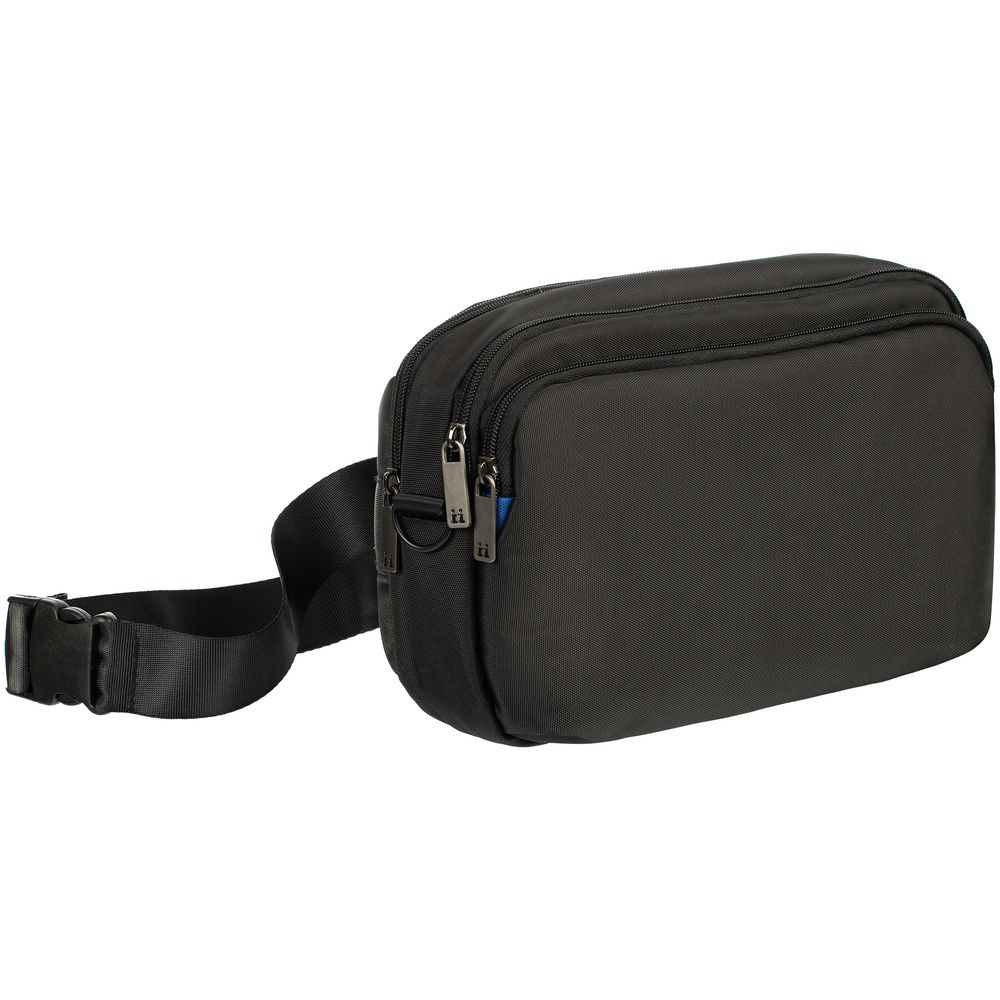 Сумку можно носить на поясе или на плече.Чтобы комфортно носить сумку на плече, уберите поясной ремень под сетчатую спинку и пристегните съемный плечевой ремень.Вместительное центральное отделение с карманами для документов и мелочейПередний карман на молнииЗадний карман на молнииМеталлическая шильда для лазерной гравировки в комплекте Цвет: черный. Размер изделия: 30x20x7,5 см. Материал: нейлон, 1680D. Возможные виды нанесения: Флекс; Лазерная гравировка; Шелкография с трансфером;