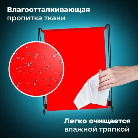 Сумка для обуви BRAUBERG, прочная, на шнурке, красная, 42x33 см, 227141