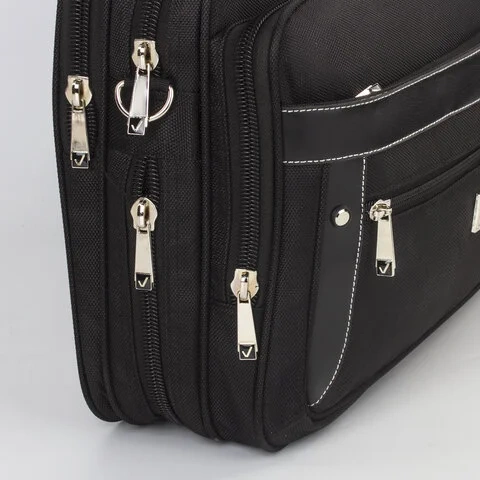 Используется прочная металлическая фурнитура. Каждое отделение имеет долговечную молнию с двумя металлическими бегунками.