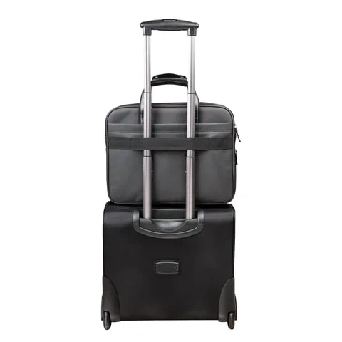 Специальный рукав позволяет зафиксировать сумку на телескопической ручке чемодана для удобного перемещения нескольких предметов багажа.