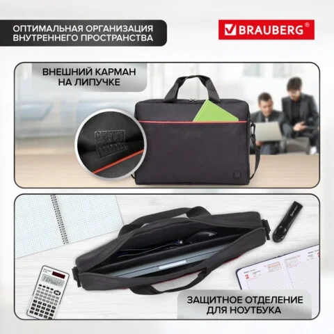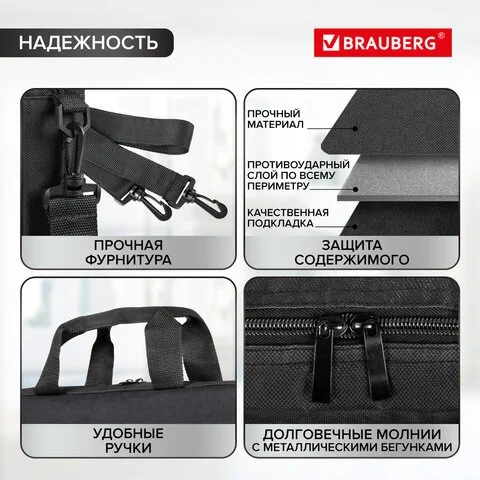 Сумка-портфель BRAUBERG 'Practical' с отделением для ноутбука 15,6', черная, 29х40х7 см, 270829