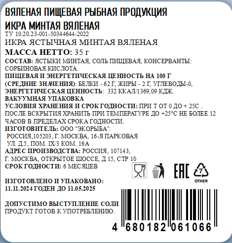 Икра минтая Ловим&Вялим вяленая, 35г