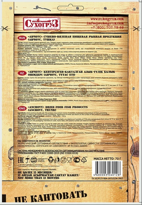 Анчоус Сухогруз сушено-вяленый, 70г
