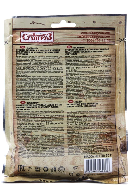 Снэки Сухогруз Кальмар сушеный, 70г