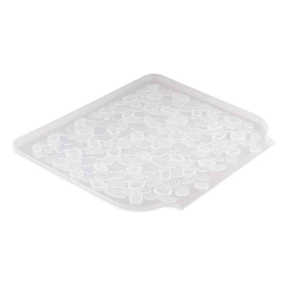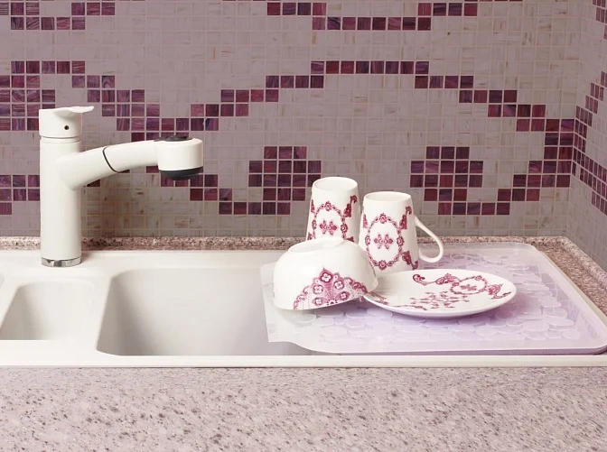 Сушилка для посуды Бытпласт, 46 х 39 х 2,3 см гармонично впишется в современный интерьер и позволит просушить вымытую посуду рядом с мойкой. Поверхность сушилки стилизована под натуральную морскую гальку с плавными и лаконичными формами. По трем сторонам сушилки имеются бортики-ограничители, а рельефная поверхность декоративных элементов предотвращает скольжение посуды. Небольшой уклон сушилки обеспечивает сток воды в раковину. Контроль сварки и антикоррозийная обработка материалов обеспечивает долгий срок службы изделия. За сушилкой легко ухаживать — достаточно протереть влажной салфеткой. В сложенном состоянии она не занимает много места.
