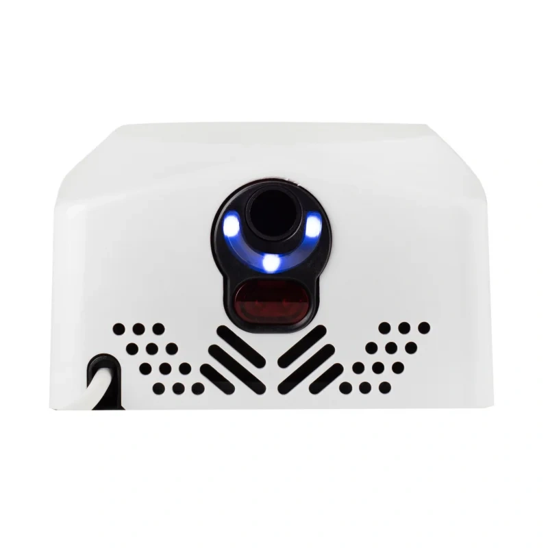 Высокоскоростная сушилка для рук нового поколения с функцией ультрафиолетового обеззараживания. Сушилка выполнена из высокопрочного пластика ABS. Встроенная система ультрафиолетового излучения одновременно с процессом сушки рук обеззараживает поверхность ладоней. Излучение от УФ светодиодов составляет 395–405 нм, что абсолютно безопасно для человека, но его достаточно для инактивации микроорганизмов (бактерий, вирусов, микробов), находящихся в воздухе туалетной комнаты. Воздух, попадая на руки, проходит через губчатый фильтр из пенополиуретана, который задерживает всю крупно- и мелкодисперсную пыль туалетной комнаты. Установлен инновационный мотор — скорость воздушного потока составляет 100 м/сек, при номинальной его мощности 600 Вт, при этом уровень шума всего 65 db. Благодаря этому руки становятся сухими менее чем за 7 секунд. В устройстве 2 температурных режима: горячий и холодный, что позволяет комфортно сушить руки в различных климатических условиях.