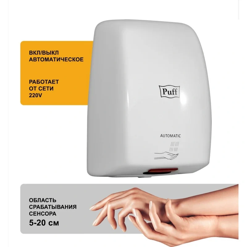 Сушилка для рук электрическая Puff-8815 сенсорная белая.