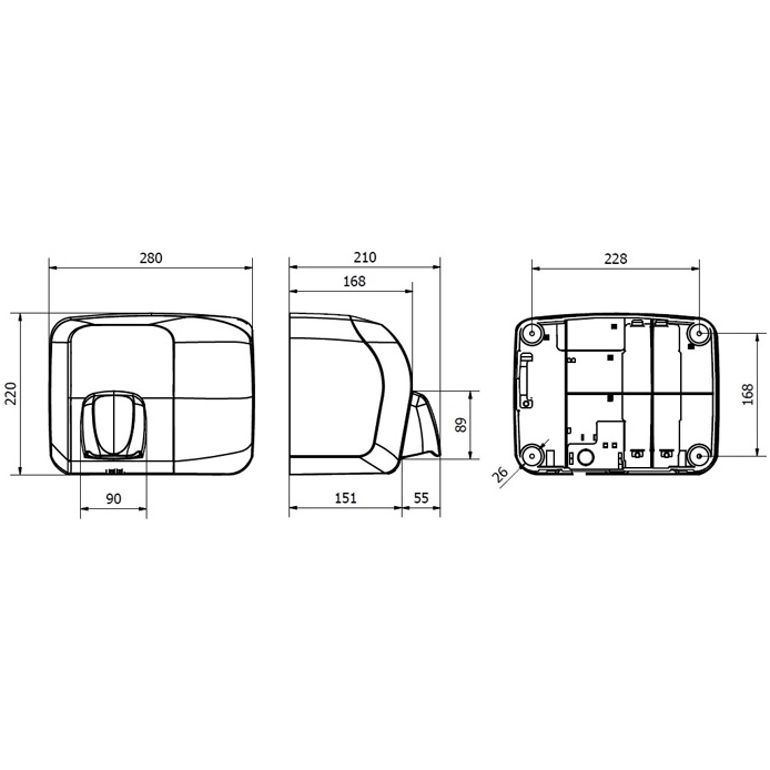 Настенная сушилка рук для общественных мест с малой и средней проходимостью. Надежный двигатель средней мощности, не турбированный. В прочном металлическом анивандальном корпусе. Качественная сборка от испанского производителя Jofel, линейка - Ibero. Стильный внешний вид. Поворотное сопло - позволяет использовать фен не только для сушки рук, но и для высушивания волос, как фен.