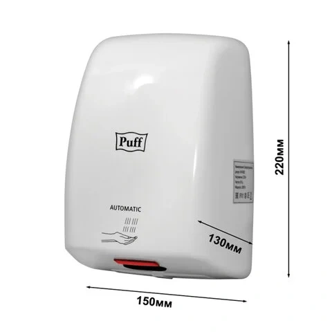 Сушилка для рук Puff 8815, 1000Вт,пластик, 150*148*220 мм, белый