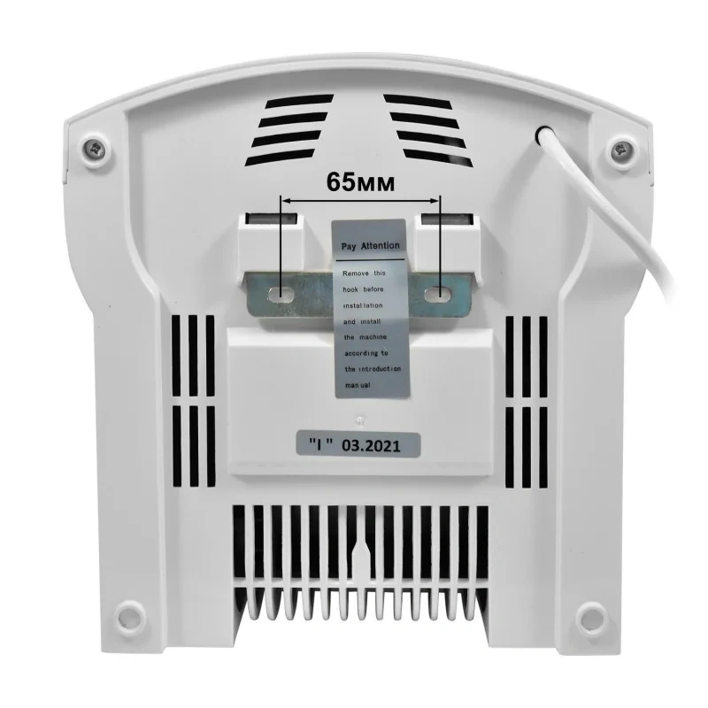 Особенности: температура исходящего воздуха — 50-65°С. Скорость исходящего потока воздуха — 16 м/с. Зона срабатывания сенсора — 5-20 см. Широкая струя воздуха. Класс влагозащиты IPX1. Низкий уровень шума. Ударопрочный корпус.