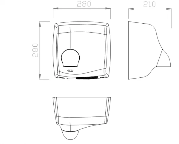Мощность 1200 Вт обеспечивает время сушки за 15 секунд. Стандарт IPX1 гарантирует защиту от брызг. Одним из преимуществ данной модели является применение того же принципа подачи потока воздуха, что и у мощных сушилок погружного типа. А именно - ряд тонких форсунок, которые создают эффект срезания капель воды с поверхности рук. Устройство оснащено каплесборником, что обеспечивает чистоту в зоне установки прибора. В комплект входит набор для монтажа: шурупы с пластиковыми дюбелями и шаблон установки для удобства разметки точек крепления.