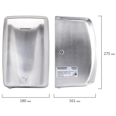 Сушилка для рук ВЫСОКОСКОРОСТНАЯ АНТИВАНДАЛЬНАЯ SONNEN K2020, 1000 Вт, 100 м/с, IPX3, 72 дБ, нержаве