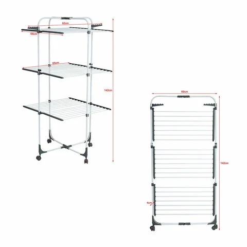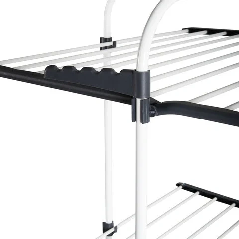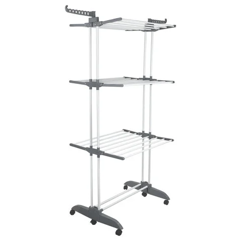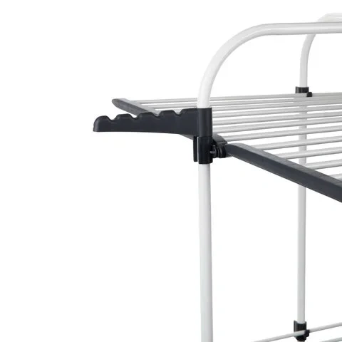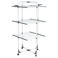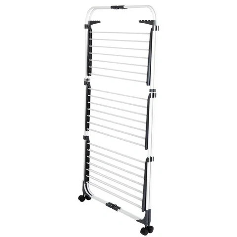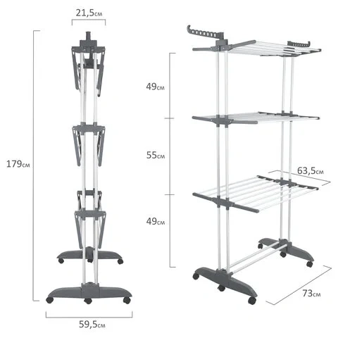 Эта сушилка подходит для помещений с ограниченным пространством и способна высушить большой объем вещей. Полезная длина сушки составляет 30 метров, что заменяет 30 метров бельевой веревки. Конструкция включает 3 уровня сушки, 5 сушильных зон, складное основание, 3 складные полки и 2 боковые планки для вешалок-плечиков.Функциональность