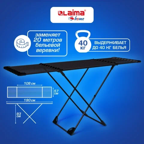 Сушилка напольная для белья раскладная, 3 зоны сушки, 20 метров, LAIMA HOME DUO SLIDING BLACK, 70046