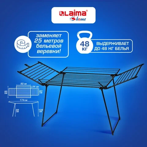 Сушилка напольная для белья раскладная, 5 зон сушки, 25 метров, LAIMA HOME MEGA BLACK, 700471