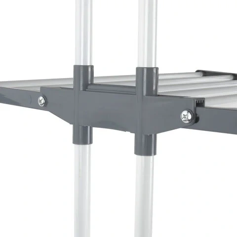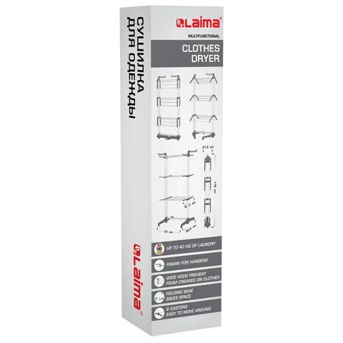 Сушилка разработана и изготовлена из качественных материалов. Вертикальная сушилка оснащена складными полками и раздвижным устойчивым основанием на колесиках. В сложенном виде она занимает всего 50 см в глубину, что делает ее подходящей для размещения в ванной, на балконе или в гардеробной комнате.Технические характеристики