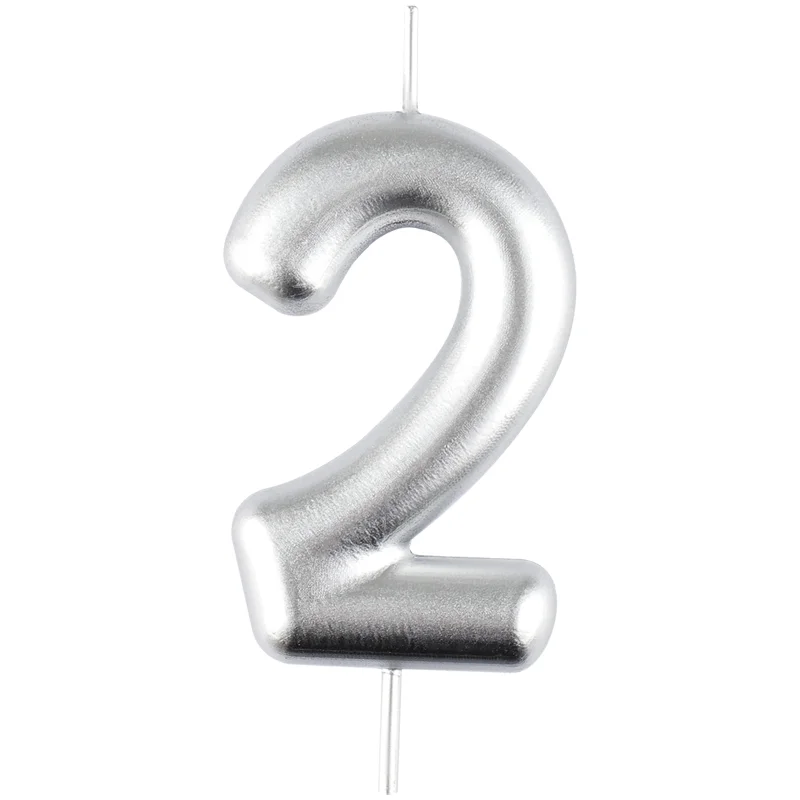 Свеча для торта с держателем MESHU 'Цифра 2', 6см, серебряная, блистер