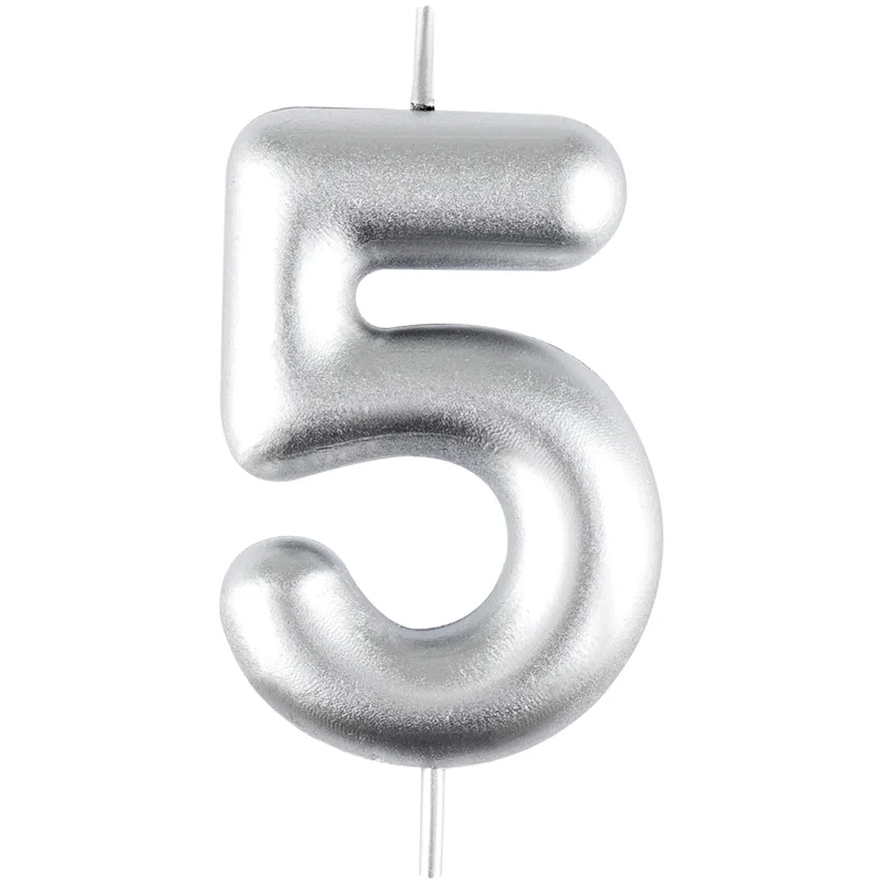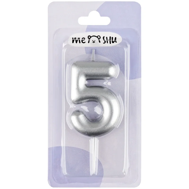 Свеча для торта с держателем MESHU 'Цифра 5', 6см, серебряная, блистер
