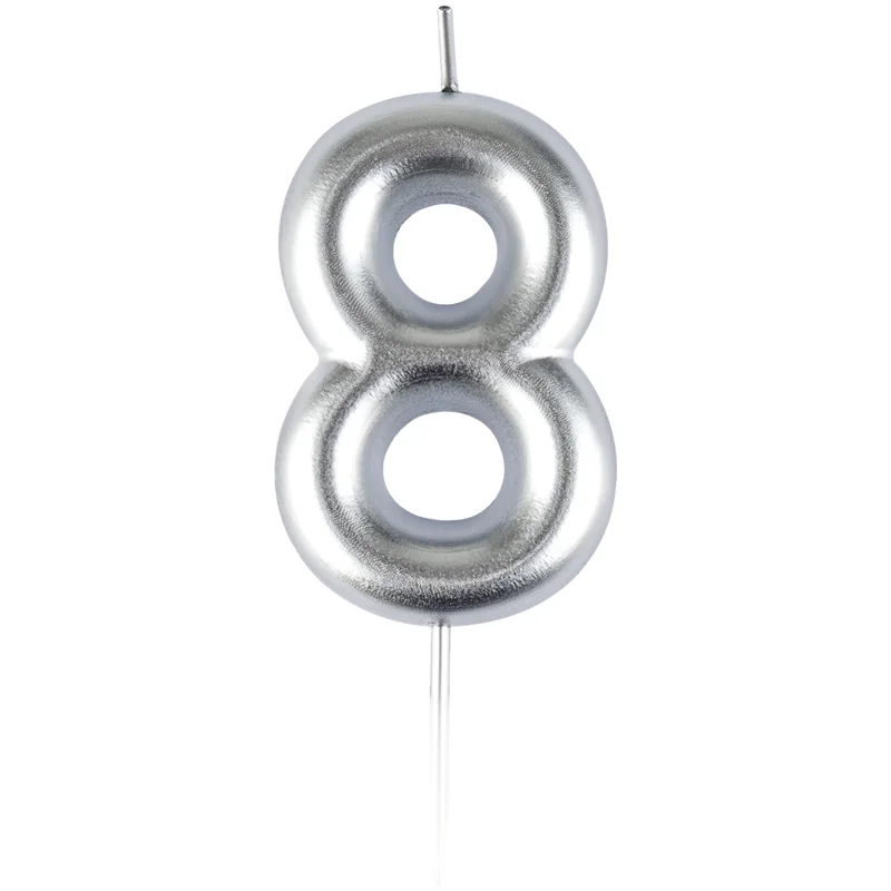 Свеча для торта с держателем MESHU 'Цифра 8', 6см, серебряная, блистер