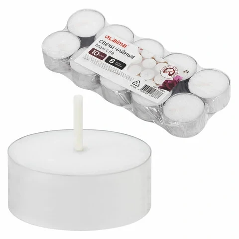 Свечи чайные Maxi Life, до 8 часов горения, вес 21 г, КОМПЛЕКТ 10шт., в гильзе, LAIMA, 609201