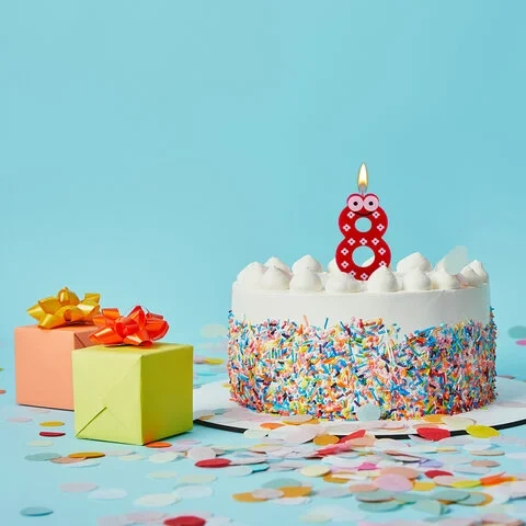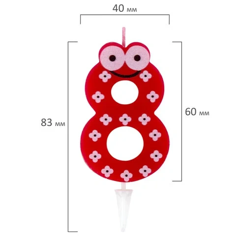 Свеча-цифра для торта '8' 'С глазками', 6 см, ЗОЛОТАЯ СКАЗКА, с держателем, в блистере, 591411