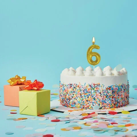 Свеча-цифра для торта '6' золотая с глиттером, 6 см, ЗОЛОТАЯ СКАЗКА, на шпажке, в блистере, 591419