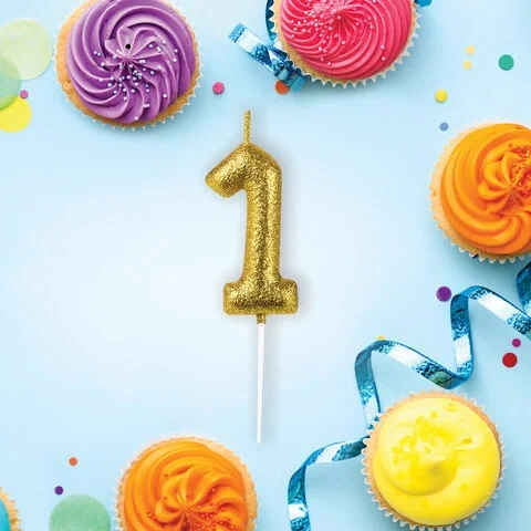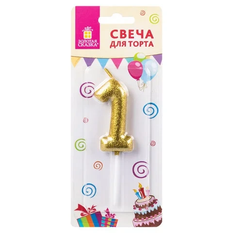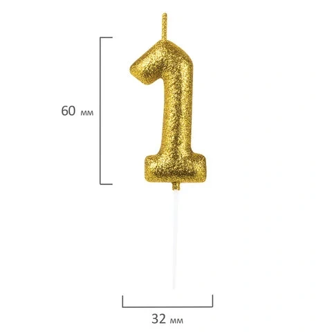 Свеча-цифра для торта '1' золотая с глиттером, 6 см, ЗОЛОТАЯ СКАЗКА, на шпажке, в блистере, 591414