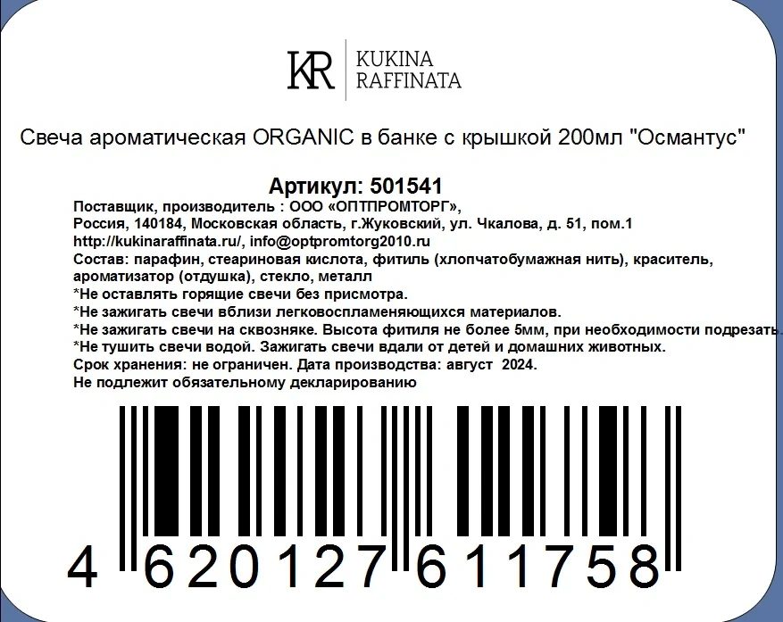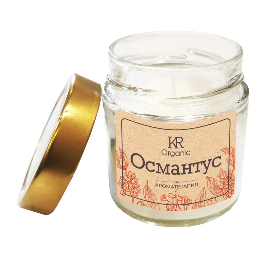 Свеча ароматическая Kukina Raffinata Organic в банке с крышкой Османтус, 200мл
