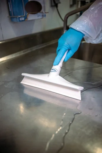 Монолитный сгон с одинарной пластиной из мягкой и гибкой резины. Прекрасно подходит для удаления воды и пищевых остатков с рабочих поверхностей.