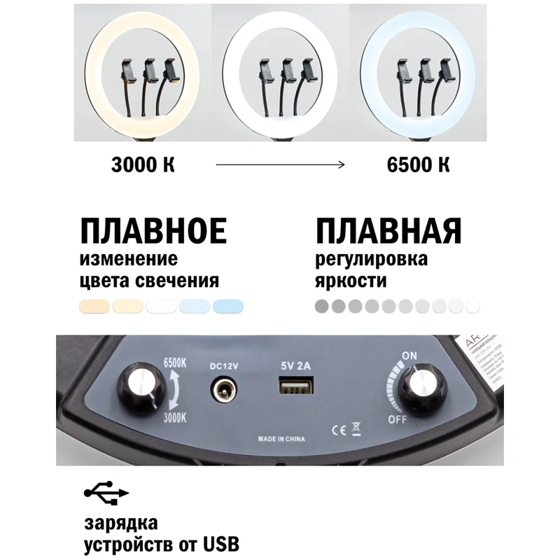 Светильник настольный кольцевой Artstyle TL-603B, 36Вт, LED, диммирование 10 уровней, штатив до 2,1м