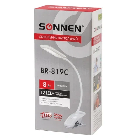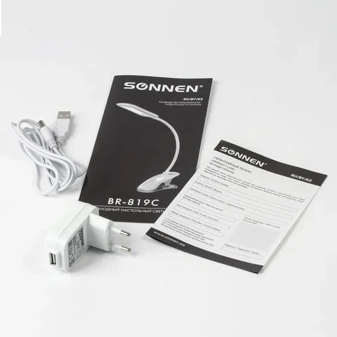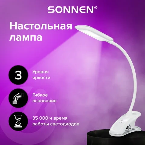 Светильник настольный Sonnen BR-819C белый, на прищепке, светодиодный