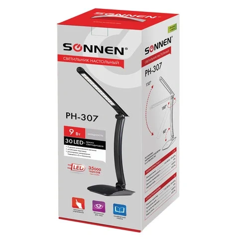 Светильник настольный Sonnen PH-307 черный, на подставке, светодиодный