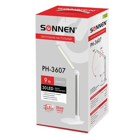 Светильник настольный Sonnen PH-3607 серебристый, на подставке, светодиодный