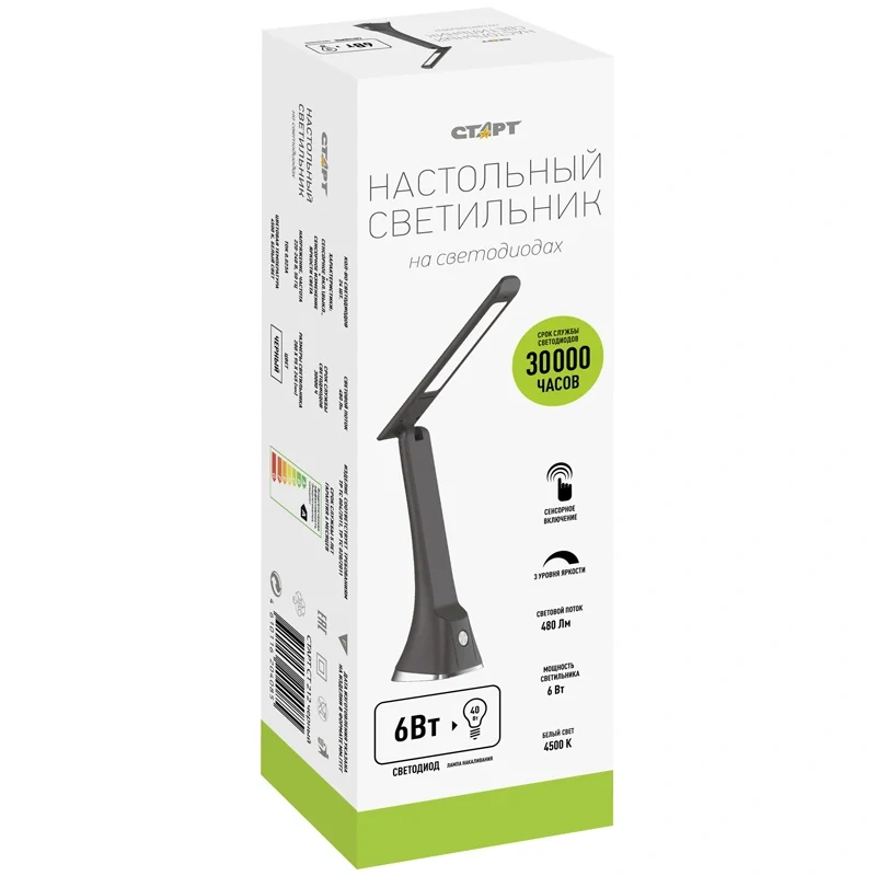 Светильник настольный Старт CT212 черный, 6Вт, на подставке, светодиодный