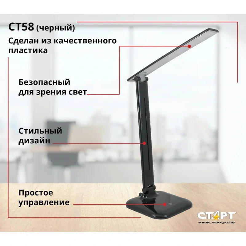 Светильник настольный Старт СТ58 черный, на подставке, светодиодный